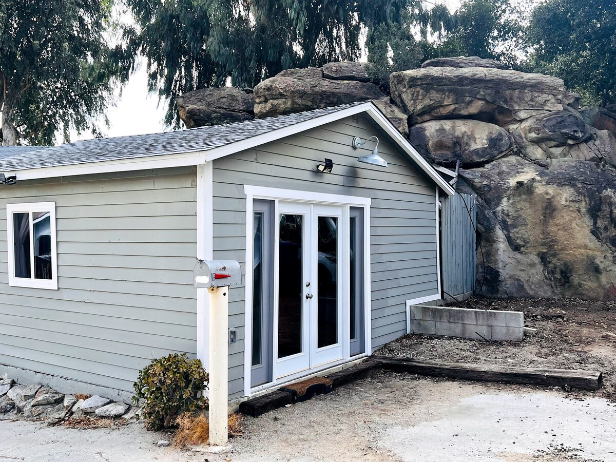 Noviji "Tiny House" u vrlo privatnom i opuštajućem okruženju. Odlično za parove i decu. Prekrasni sadržaji, privatni ulaz s parkingom u sklopu objekta. Uživajte u pogledu na planine i kanjone Castaica i okolnih dolina ispod! Samo nekoliko minuta od Six Flags i Cal Arts. Luksuzni master suite, kompletna kuhinja sa velikim pultom, prelepo kupatilo sa svetlarnikom! Svi sadržaji su vam na raspolaganju za uživanje i boravak. Kafa, čaj, WiFi, TV uključen. Udobnost kao u sopstvenom domu!