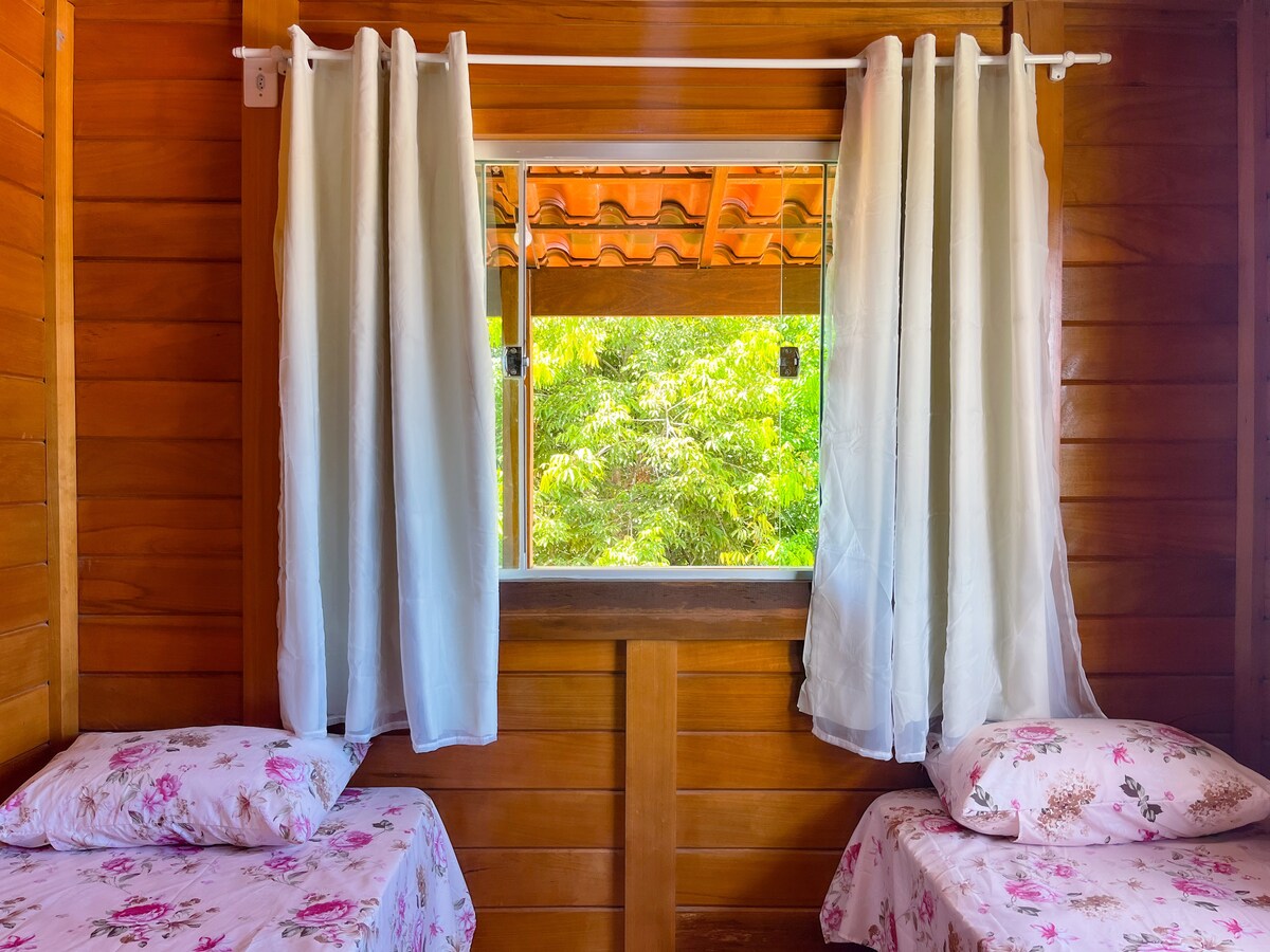 Descubra o seu refúgio na natureza! Esta encantadora casa de madeira possui 3 quartos (sendo 1 suíte com ar-condicionado), 3 banheiros, sala e cozinha equipada. Está localizada a apenas 2 km da praia de Coroa Vermelha , em um condomínio fechado que oferece tranquilidade e segurança. Com um lindo lago e muitas árvores ao redor, é o lugar perfeito para quem ama estar em contato com a natureza e desfrutar de caminhadas relaxantes.