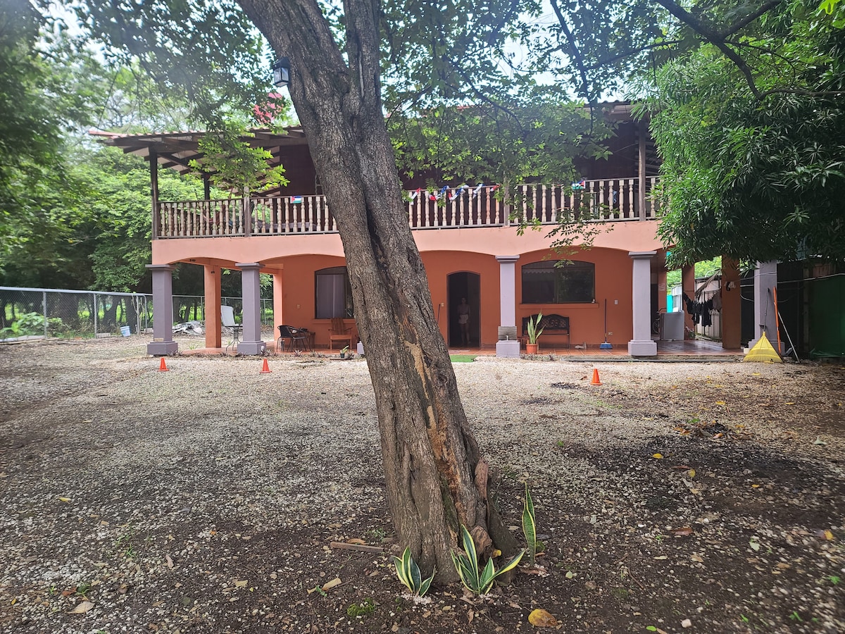 A spacious open-concept studio that's a 2-minute walk to Guiones beach. Features WiFi, TV, A/C, full kitchenette with oven, and covered patio surrounded by tropical gardens. Set on the property of our local surf resort, on-site you’ll also find a pool, open-air rancho, café, and surf shop (providing rentals and lessons). More restaurants and shopping are a short stroll away. Ideal for solo travelers, surfers, couples, families or small groups looking to enjoy our beautiful surf town in Nosara.