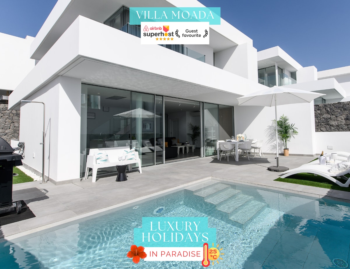 We present Villa Moada Ocean Breeze, a spectacular 252m2 avant-garde design villa fully equipped with all the necessary comforts for a unique and luxurious experience in Tenerife. It includes private heated pool and terraces with sea views, lift, 3 bedrooms with natural light, air conditioning and Smart TV, 3 bathrooms with shower, living room and fully equipped kitchen. On the ground floor games room and cinema and garage for 2 cars.