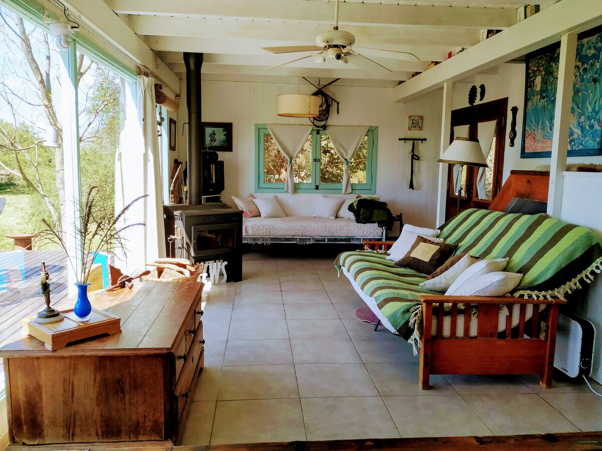 Cela seoska kućica i natkriveni šporet sa roštiljem. To su dve nezavisne kuće usred sela - 4 hektara parka sa drvećem starog rasta - samo sat i po od centra Buenos Ajresa. Ekskluzivni maksimalni kapacitet iznajmljuje se 6 osoba, nema zajedničkih prostorija. Nevjerovatan pogled sa sela, sa različitim bojama i slomljenim bojama od boravka na brdu. Idealna je za odvajanje i opuštanje usred prirode, apsolutni mir, samo buku ptica, drveća i mlina.
