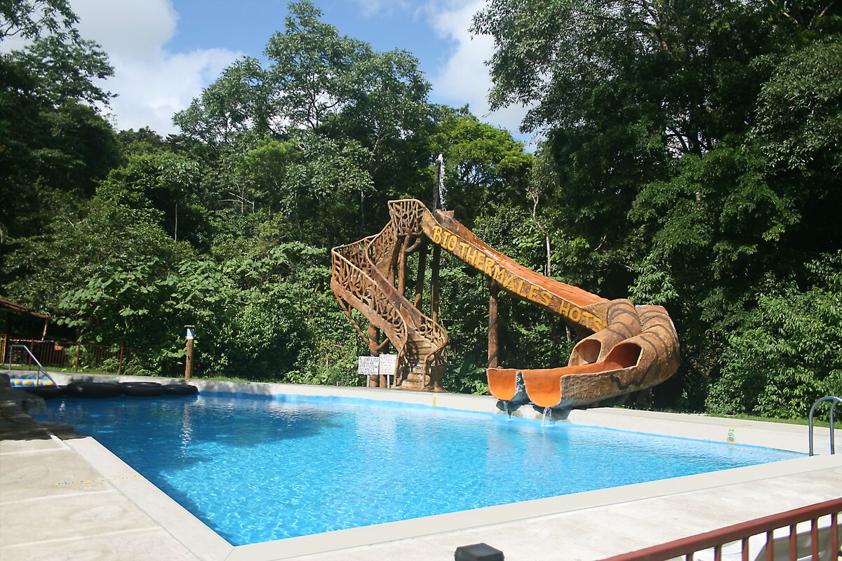 The hand-crafted Magical Jungle Tree House is one of 3 casitas and 2 treehouses at the Bio Thermales natural eco-resort organically integrated into our 35 acre rainforest. Guests enjoy free 24 hour access to the 15 natural hot and cool springs pools of various temperatures and rainforest trails. No children under 7 years of age for safety reasons