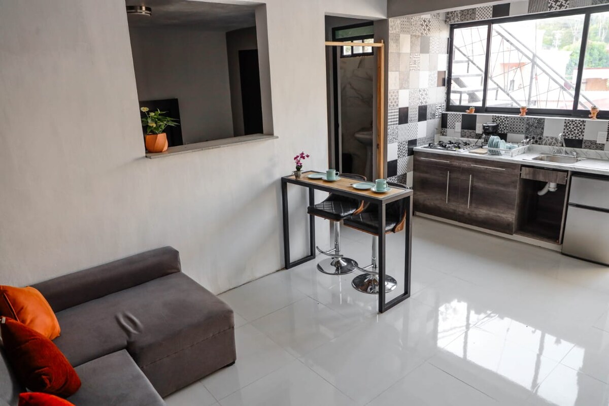 Prošećite istorijskim centrom iz našeg doma, nalazimo se u srcu Oaxaca. Stan sa bračnim krevetom, trpezarijom, dnevnim boravkom i kuhinjom. Odvojite kupatilo u stanu. Prostran, osvijetljen i dobra ventilacija. Dekoracija je inspirisana tradicionalnom Oaxacan kućom, zanatima i u stilu Oaxacan.