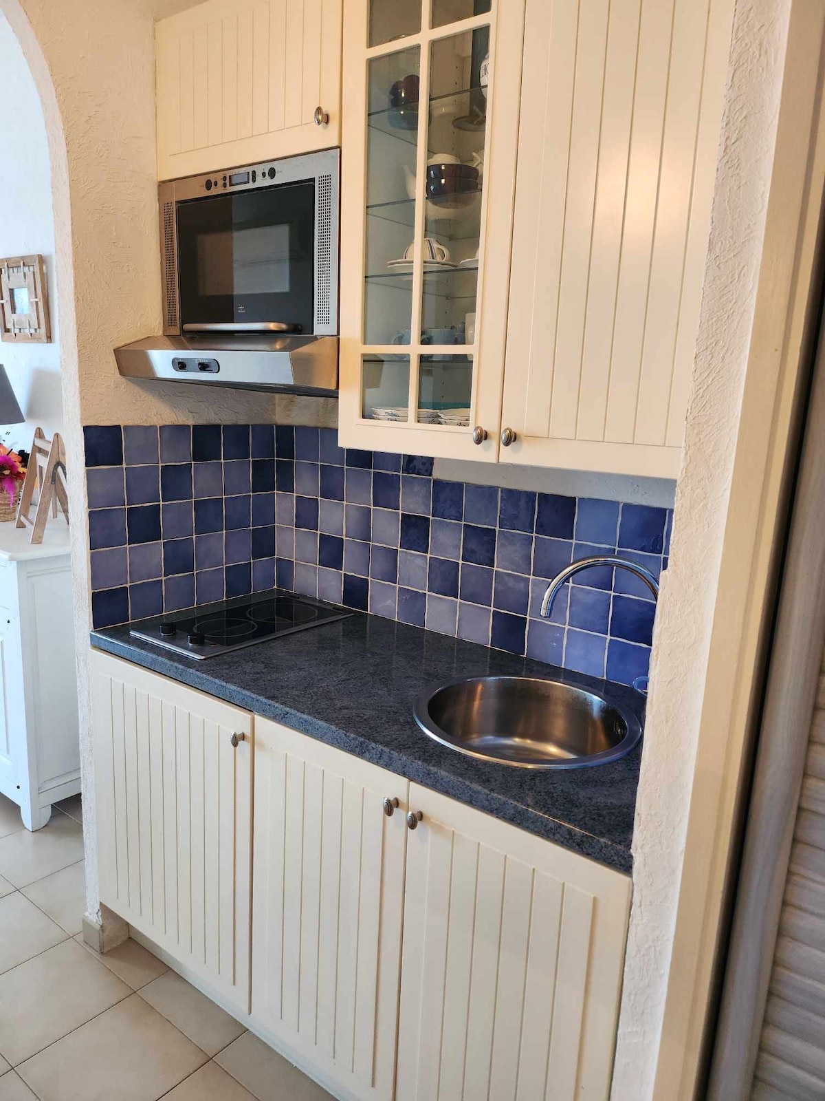 Studio uključuje dnevni boravak od 30 m2 sa krevetom od 140/190 cm i klupom (za spavanje 140/190 cm), čajnu kuhinju sa keramičkom pločom za kuvanje, rernom, mašinom za pranje sudova, mikrotalasnom rernom, aparatom za kafu Dolce Gusto, kuvalom, tosterom i frižiderom / zamrzivačem. Tu je i TV ravnog ekrana u dnevnom boravku, mašina za pranje veša u kupatilu i terasa sa pogledom na more