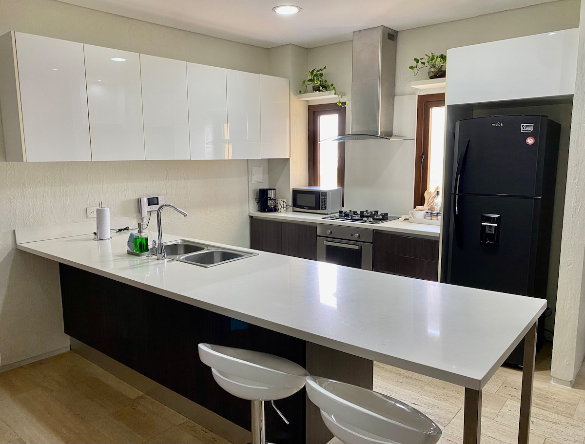 Najbolja tradicionalna republikanska arhitektura i minimalistička dekoracija sa detaljima modernosti, dodata inspirativnoj atmosferi opuštanja, učiniće vaš boravak nezaboravnim iskustvom koje možete da podijelite sa porodicom i prijateljima. Uživajte u privatnom bazenu okruženom drvećem i baštom. Nalazi se u istorijskom centru Santa Marte, 4 bloka od plaže i u blizini restorana i supermarketa. Imamo 3 kamere koje se nalaze u spoljašnjem dvorištu u području bazena.