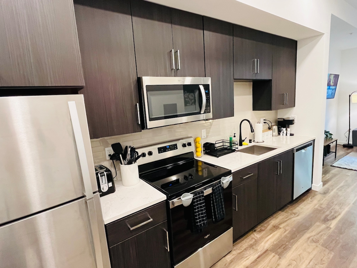 Elegantne, vrhunske završne obrade upotpunjuju ovaj potpuno preuređeni dom koji predstavlja primjer udobnog luksuza. Ova 1 spavaća soba je prostrana i savršena za parove ili poslovne putnike. Roku Smart TV○ od 50inča sa osnovnim kablovskim i aplikacijama ○ Kuhinja sa mašinom za sudove, filtriranom vodom, ledomatom, keurigom, posuđem, priborom za pečenje, priborom za jelo itd. ○Rezervisano parkiranje u garaži (kompaktno) ○Popločano kupatilo sa kadom/tušem, ekološki sapuni ○Centralno grejanje i klima-uređaj ○Mnogo prirodnog svjetla ○Možete prošetati do restorana ○Jednostavna elektronska brava