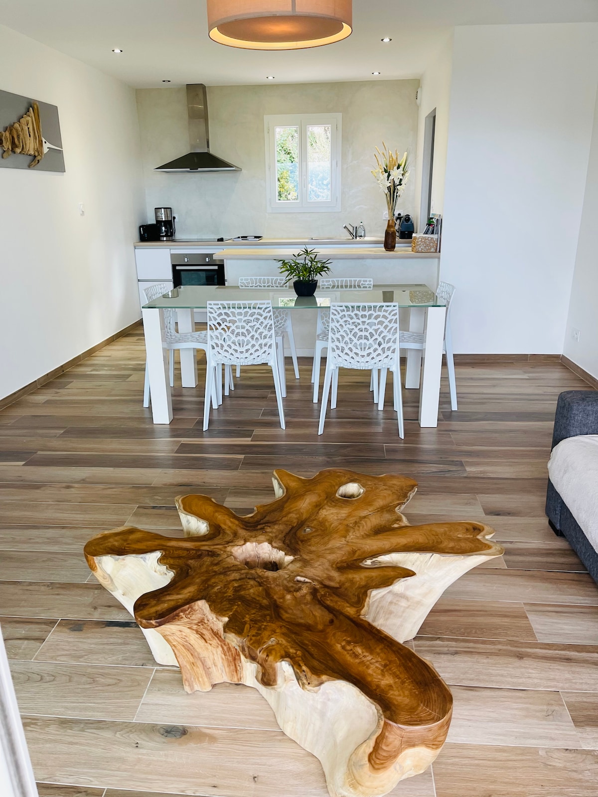 Ce logement unique est composé, de 3 chambres climatisées, un grand salon salle à manger, une grande cuisine, une salle de bain, une terrasse ainsi qu’une cour intérieure très agréable pour les repas d’été. Proche du complexe sportif de Saint François et à seulement 10 min des plages en voiture. Au cœur de Monticello, vous y trouverez une épicerie, un bar/restaurant et des places de parkings. (Son double vitrage offre le calme) Casa U Monte est une maison corse dans toute son authenticité