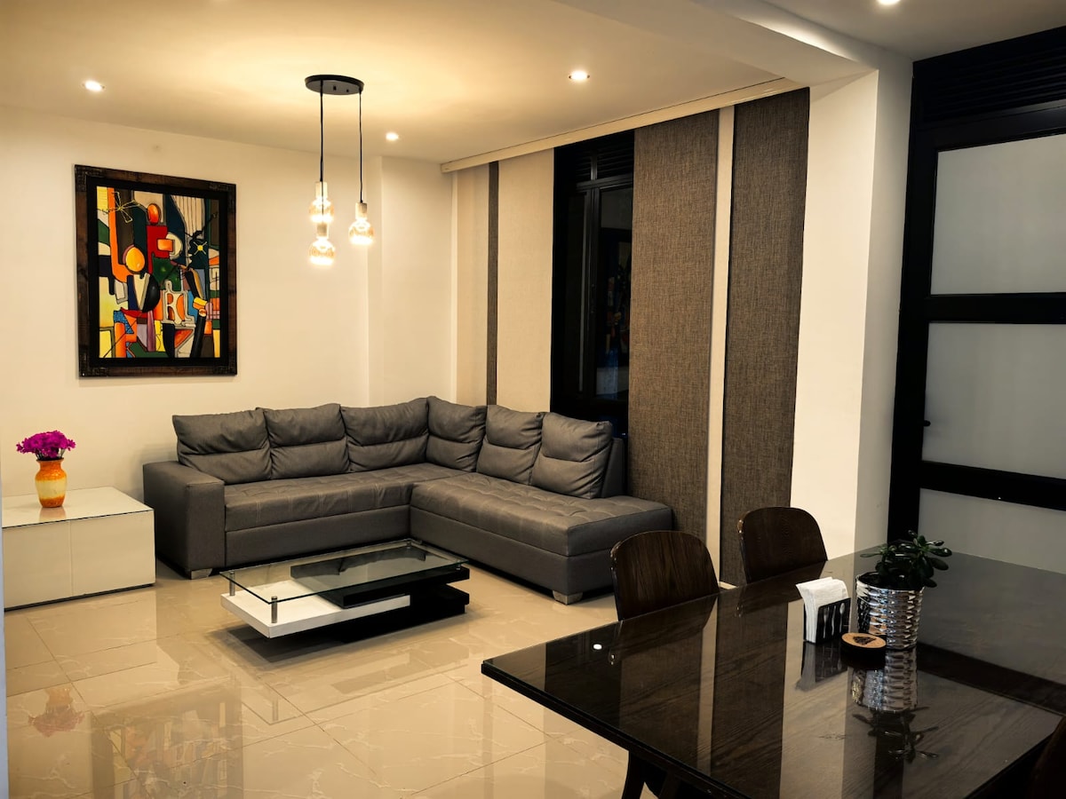 Apartamento moderno en zona residencial tranquila, ideal para parejas que buscan descanso y privacidad. Cuenta con habitación principal con cama queen y baño privado, además de sofá cama doble con acceso a segundo baño completo, cómodo para hasta 4 personas. Parqueadero privado, WiFi estable, y agua caliente. A 10 minutos en carro del centro y puntos turísticos. Disfruta café y aromáticas de cortesía para empezar el día con tranquilidad. Contamos con póliza hotelera.