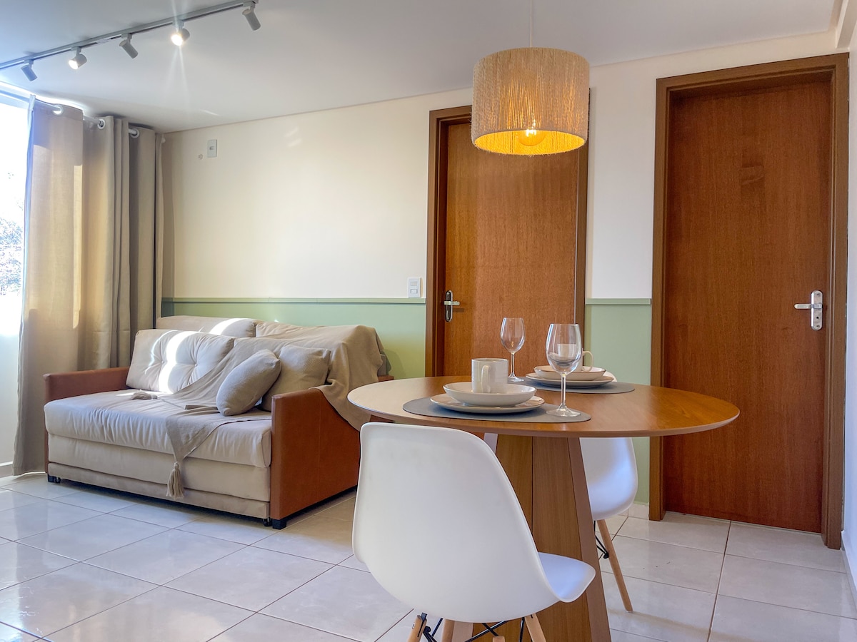 Este apartamento independente é perfeito para viagens inesquecíveis, especialmente viagens em família. Com uma decoração elegante, o espaço possui todos os ítens básicos e necessários para uma estadia única e perfeita. Diferenciais: * 2 ar- condicionados (quente e frio) 12.000 BTU’s * 1 Vaga de Garagem Coberta (espaçosa, fácil acesso e manuseio) * Churrasqueira na Sacada (16º andar)