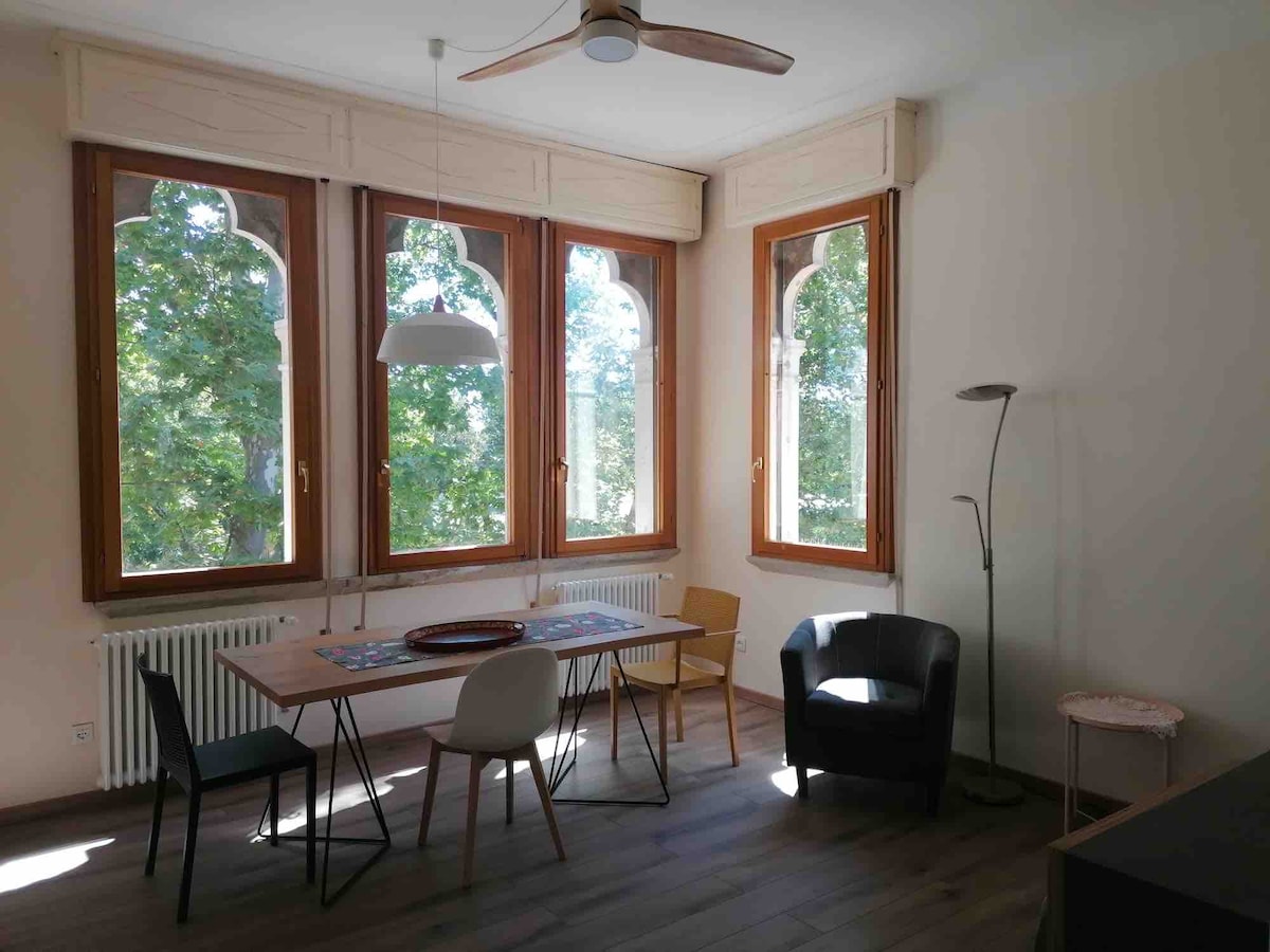 Our modern flat has been newly redecorated to offer a comfortable and warm ambience, with an amazing spacious bathroom with large shower and a confortable mattress. We can host up to 4 people and the flat is equipped with many facilities. It takes 1 walking min from Biennale and boat stops, 5 min from Via Garibaldi, 15 min from S. Marco Sq.