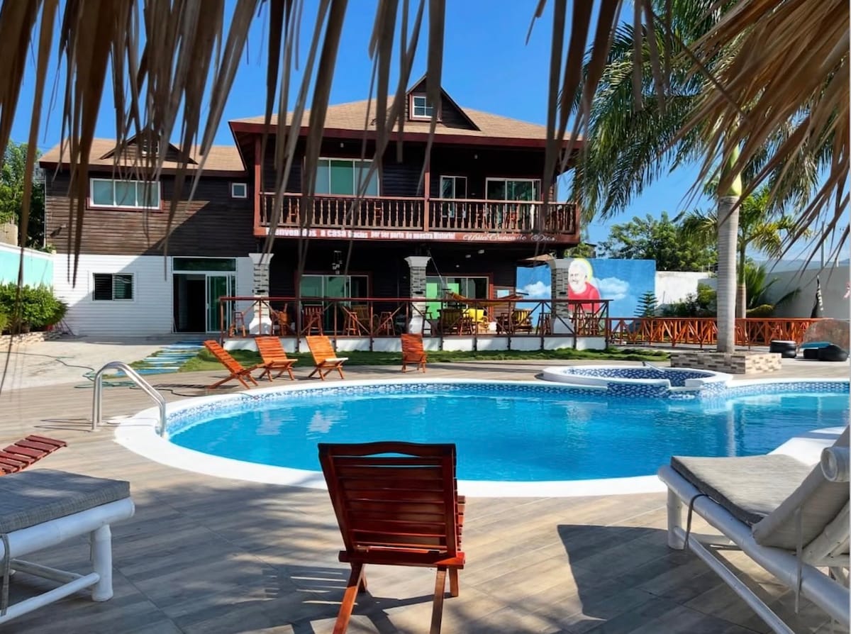 Ova boemska i udobna brvnara ima ruralni i jedinstveni stil usred grada Santjago. Svaki kutak kuće ima artefakte iz različitih krajeva svijeta. Nalazi se u vili Olimpica, u blizini univerziteta Utesa i PUCMM, supermarketa, apoteka i tržnih centara. Samo 10 minuta od spomenika i 15 minuta od međunarodnog aerodroma Čibao. Obećajemo vam da ćete se zaljubiti u ovu drvenu kuću!!!