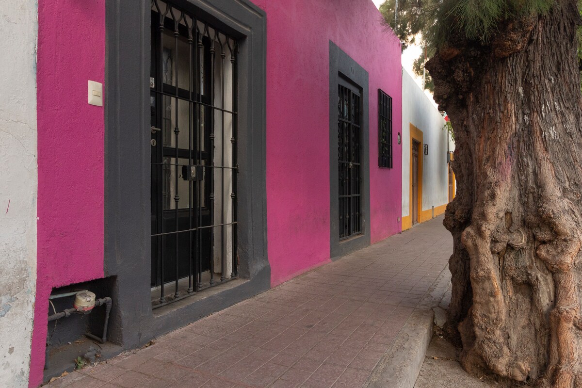 Casa Dos Cuervos u centru Querétaroa. Uživajte u jedinstvenom iskustvu našeg apartmana koji je dizajnirao studio za uređenje enterijera. Ima bračni krevet, klima-uređaj, opremljenu čajnu kuhinju i nezavisno kupatilo. Na spratu se nalazi prostrani apartman sa bračnim krevetom, klima-uređajem, klima-uređajem, televizorom, televizorom, i kućnom kancelarijom. Uvek čist i spreman da vam poželim dobrodošlicu. Doživite grad Querétaro kao mještanin u ekskluzivnom i udobnom prostoru.