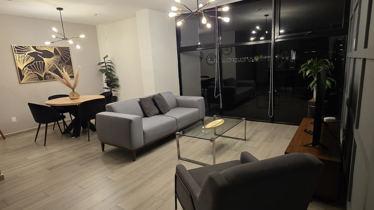 ZGRADA „LA DROP” između Plaza del Parque i Plaza Boulevares Privatna terasa, sa stolom i 8 stolica Brzi Wi-Fi SmartTV (Roku) u dnevnoj sobi i glavnoj spavaćoj sobi Udoban radni sto sa kontaktima i USB priključkom u slučaju da treba da radite Kuhinja sa šporetom, mikrotalasnom rernom, frižiderom, blenderom, aparatom za kafu, posuđem, posuđem i prečišćivačem vode u 5 faza Mašina za pranje i sušenje veša Ulaz sa digitalnim tablicama, ulazite i izađite kada vam zatreba Nije pogodno za kućne ljubimce