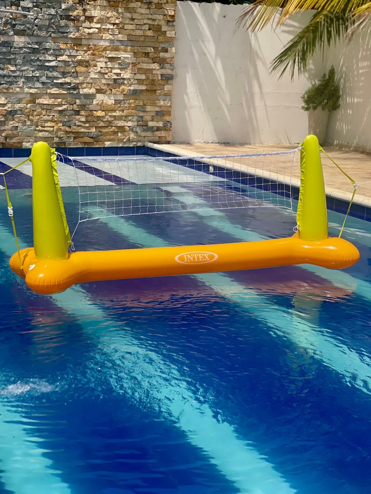 The condominium consists of three houses with a maximum capacity of 10 people each, with two rooms, two bathrooms, living / dining room, kitchen and a courtyard for clothes; All our houses are fully equipped with A / C, ceiling fan KDK, Direct TV, internet, bedding, hammock and a shared area with BBQ, adult and children’s swimming pool, children’s playground, beach volleyball court, basketball board, and parking lot. The Condominium Atlantis is Located at 100 meters from the sea.