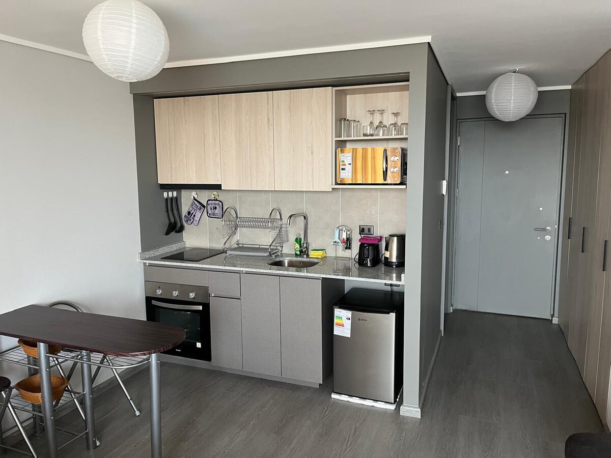 Tražite stil, odmor i dobru lokaciju? Ova moderna i topla garsonjera ima sve za nezaboravan boravak u Santijagu. Potpuno je opremljen za 2 osobe: ♨️ Klima-uređaj 🍴 Potpuno opremljena kuhinja. 💻 Odličan Wi-Fi i trpezarija Butik ✨ dekoracija 🥩 Plinski roštilj 🏓 Sto za sto za sto za sto 🗻 Pogled na Kordiluru 📚 Knjige i društvene igre Imamo lokalnog vodiča sa preporukama kako da maksimalno iskoristite ovaj neverovatan grad!