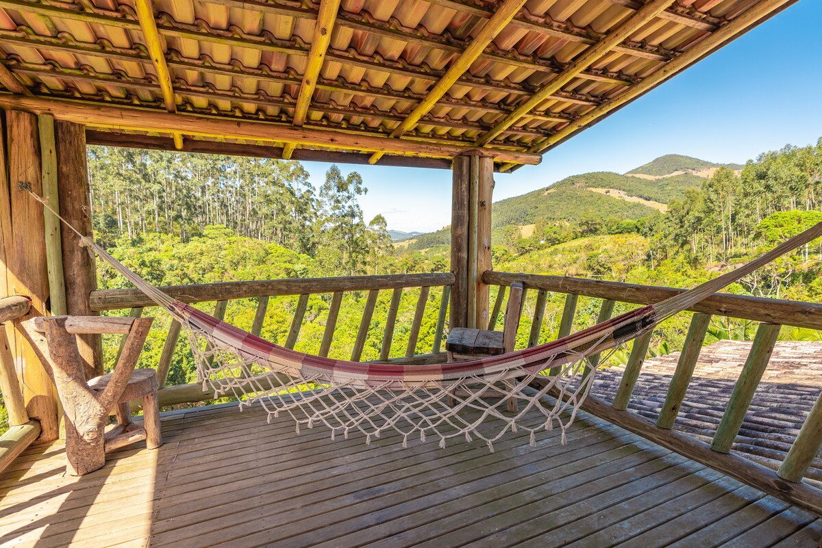 Prelijepa planinska kuća u rustikalnom stilu, visoko na planini, okružena prirodom, prostrana, sa nekoliko unutrašnjih okruženja za druženje, 2 spavaće sobe + 1 apartman, panoramskim pogledom od 360 stepeni sa velikim natkrivenim i nenatkrivenim balkonima, garažom, jezerom, organskom baštom i prelijepim voćnjakom u formaciji. Optički internet i TV od 200 MB sa više od 200 kanala. Nalazi se u blizini BR-282 (6 km), sela Taquaras (7 km) i grada Rancho Queimado (15 km).