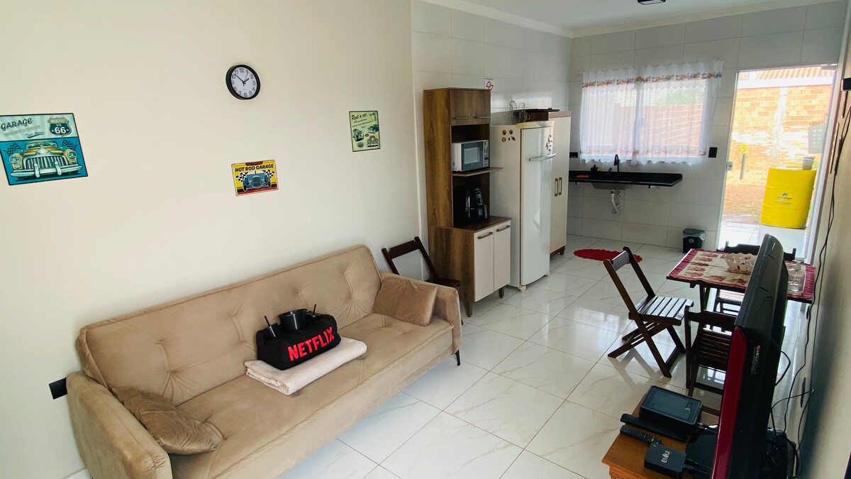 Smještaj na odličnoj lokaciji u blizini supermarketa, pekare, apoteke, Lojas Lugar sa jednostavnim pristupom autoputu do Aguaija, Vargema, Pinhala za industrijsku četvrt. Unesp College. Kuća Vrlo udobna, sigurna, vešeraj (rezervoar, rezervoar i konopac za veš) kuhinja (frižider, šporet, blender, mikrotalasna pećnica, sto sa stolicama), kupatilo (električni tuš), 1 spavaća soba sa komodom, krevetima i ventilatorom ), TV smart u sobi !! Wi-Fi i dvorište sa zajedničkom garažom od prednje strane do kuće