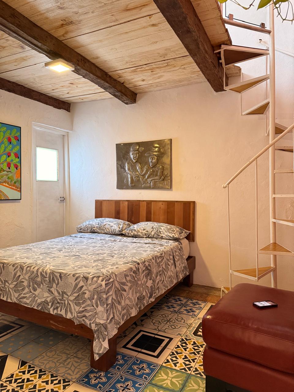 Apartman u potkrovlju u prizemlju sa baštom i bazenom u Fixie Lofts Colonial Villa Suites. Najbliži bazenu, ovaj apartman u prizemlju Fixie Lofts Colonial Villa Suites nudi direktan pristup. Dva industrijska vrata vode do spavaće sobe s bračnim krevetom, ventilatorom i kupatilom s dvostrukim umivaonikom. Gosti vole ručno izrađene pločice za tuširanje. Dnevni boravak uključuje opremljenu kuhinju i trpezarijski sto za 2 osobe, sa pogledom na mirnu, tropsku baštu iza kuće. Objavljeni smo u programu Condé Nast Traveler.