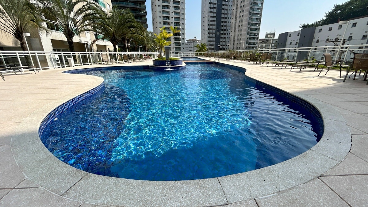 **BEST LOCATION IN GUARUJÁ, DON'T USE YOUR CAR FOR ANYTHING** 90 meters from the BEACH, LUXURY CONDOMINIUM, Air Conditioning, POOL, 2 COVERED PARKING SPACES, BARBECUE, BEACH SERVICE (with chairs and umbrella) **NEW BRAND, POCKET SPRING BOX BEDS, SMART TV** - Living room with 2 areas with sofa bed, 60” SmarTV, Wi-Fi - Suite with 1 double bed + SmartTV + closet+ mini-fridge -Bedroom with 2 single beds + closet+ balcony -2 bathrooms -Fully equipped kitchen -Balcony in the living room with chairs