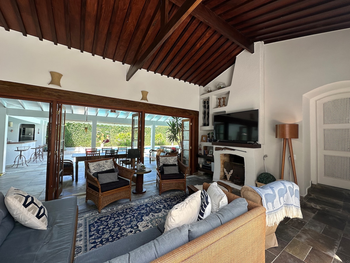 Ambiente familiar, acomodação para 15 pessoas, com piscina, sauna, beach tênis, futevôlei, mesa de sinuca, 2 churrasqueiras, forno à lenha, fogão à lenha, aquecimento a gás, estacionamento para 10 carros, 3 quartos com ar condicionado, sala com lareira, área de lazer junto à casa com 170m2, área junto a piscina com 430m2, pássaros da região(Tucano, Pica Pau, Periquito, etc. Área interna da casa com +/- 220m2. No bairro tem 2 mercados 1 padaria, 1 UPA, tem um portinho bom para passear e pescar.