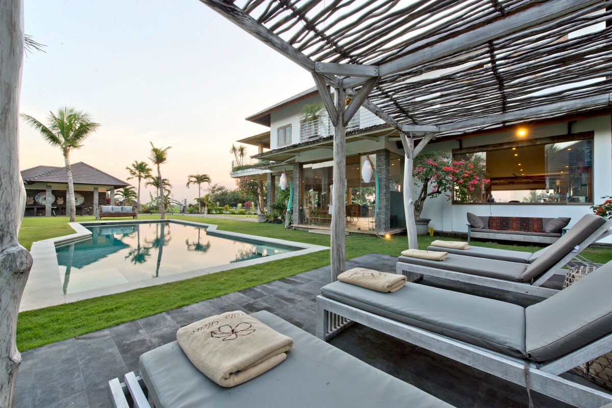 ✔ Fantastična lokacija✔ osoblja ✔ 16m bazen i bar pored bazena ✔ 25+Mbps Wi-Fi Veranda ✔ pored bazena ‘Atelje’ je zapanjujuća tradicionalna vila sa bračnim krevetom, velikim dnevnim prostorom i opremljenom kuhinjom, sa prelepim tropskim polu-alfresco spojenim kupatilom. Ova vila je jedno od 7 jedinstvenih privatnih zdanja sa osobljem, bazenom, barom pored bazena i zadivljujućim tropskim baštama u vili Sejoli, naša porodica vodi butik vilu u Umalasu na Baliju.