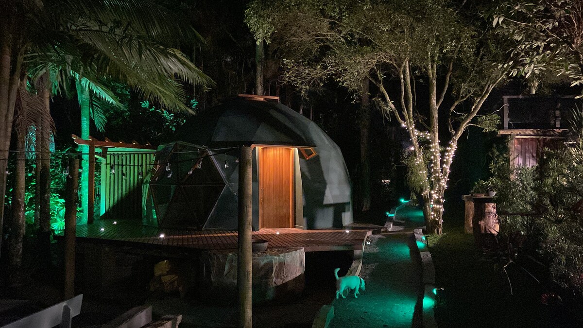 Neverovatan doživljaj u KUPOLI! Savršeno za putovanja parova i za proslave posebnih prilika. Mimos de Welcome! Bračni krevet (širine 150-179 cm) s odvojenom posteljinom. Unutrašnjost prostora je veoma velika!! Sa hidromasažnom kadom, hromoterapijom, soli i pjenom za kupanje. Kompletno kupatilo. Klima-uređaj. Smart TV sa Netflix-om. Opremljena kuhinja! Spoljašnji prostor/terasa okrenuti ka brani. Savršeno za one koji traže mir pored prirode! Fogo de Chão! Doručak - podudaranje!