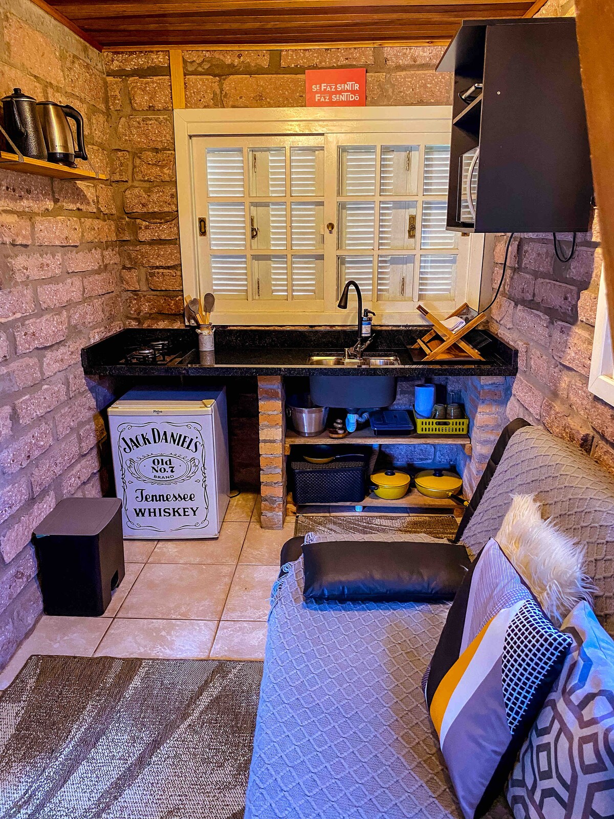 O chalé oferece todo o conforto para uma estadia relaxante e sem preocupações. Disponibilizamos roupas de cama e banho de alta qualidade, além de roupões e pantufas, pensados para proporcionar uma experiência ainda mais aconchegante. Para momentos de autocuidado, os hóspedes contam com amenities especiais, como sais de banho, espuma de banho. A cozinha é completa e totalmente equipada, com forno, frigobar, torradeira, chaleira elétrica.