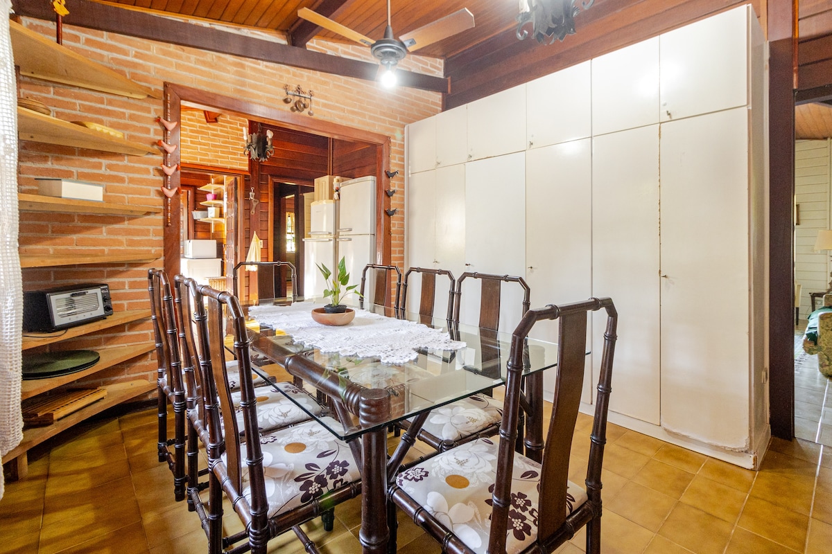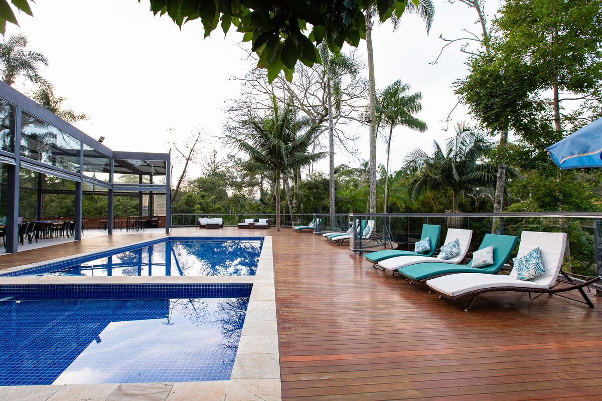 Prefinjenost i velnes usred prirode, 50 minuta od Sao Paula. Glavna kuća sa 7 apartmana koji primaju do 18 osoba (vrijednost smještaja) i Casa-chalet 4 spavaće sobe koje primaju do 12 ljudi (zatražite dodatne iznose). Potpuno opremljena kuhinja. Fudbalski teren, teren za tenis na plaži, bazeni sa grejanjem, Wi-Fi, Skaj… Savršeno za vikende, praznike, grupne i porodične sezone, Božić, novogodišnju noć. Ako tražite savršeno mesto za svoj događaj, pronašli ste ga ovde!