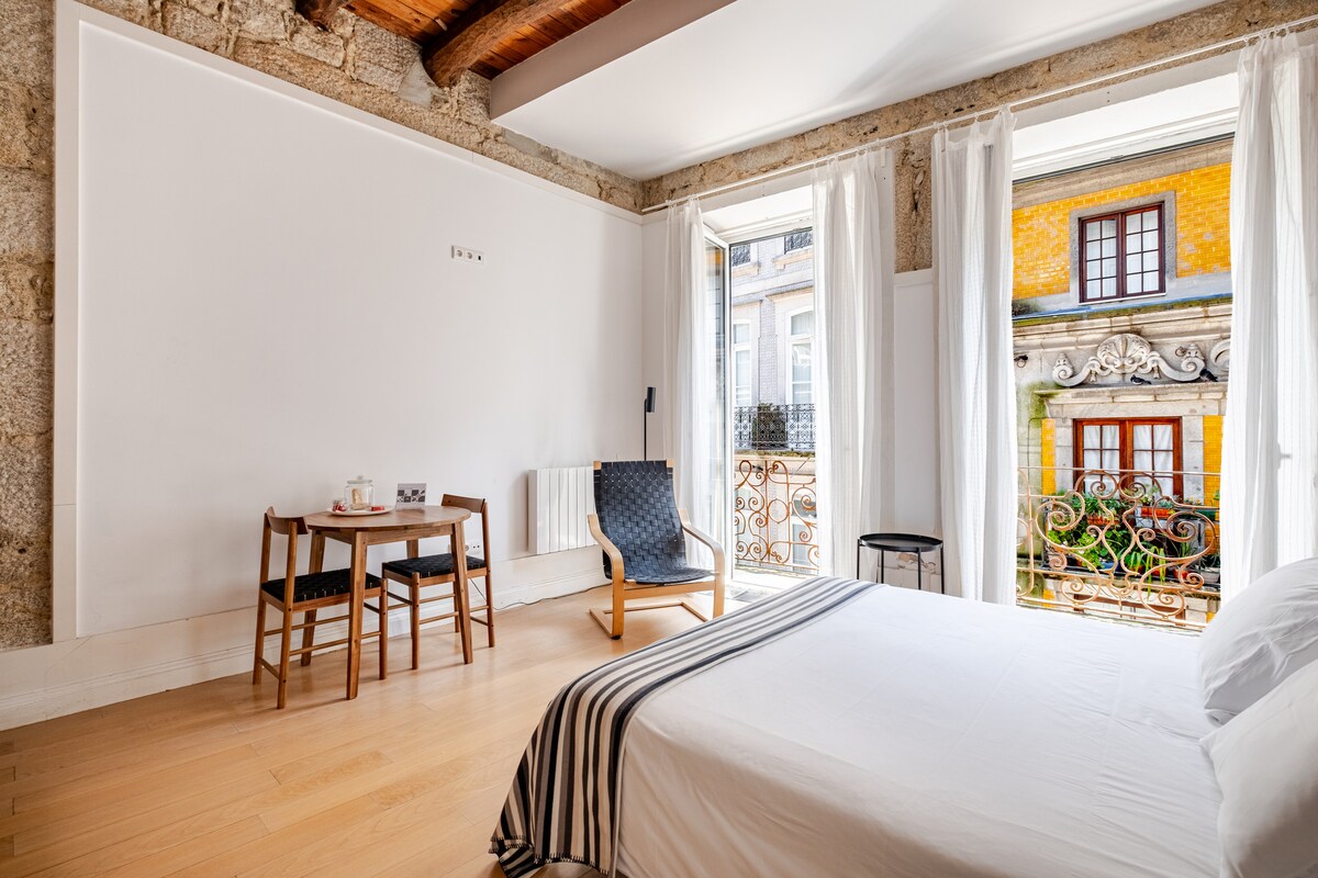 Dobro došli u naš umetnički loft, koji nudi zaista autentičan i inspirativan doživljaj boravka. Bićete u ulici „Rua Infante D. Henrique“, jednoj od najlegendarnijih ulica u srcu Ribeire u istorijskom centru Porta. Sa balkona ćete videti čuvenu zgradu „Palácio da Bolsa“, a odmah iza ugla, pored reke, otkrićete živahan i očaravajući Trg Ribeira, legendarno odredište prepuno očaravajuće mešavine barova, prodavnica i užurbanih pijaca.
