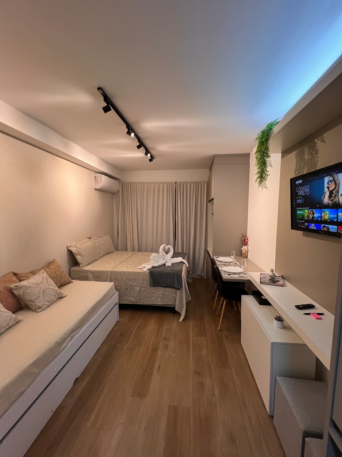 Boravite na 30. spratu zgrade Copan sa jednim od najfantastičnijih pogleda na zalazak sunca. Ovaj potpuno opremljen studio ima sve što vam je potrebno za nezaboravan boravak u najpoznatijoj stambenoj zgradi u Brazilu. Smešten na vrhu jednog od remek-dela arhitekte Oskara Nimajera, ovaj stan je potpuno preuređen u projektu arhitekte Tereze Maskaro, a sada je takođe deo Airbnb projekta u Kopanu.