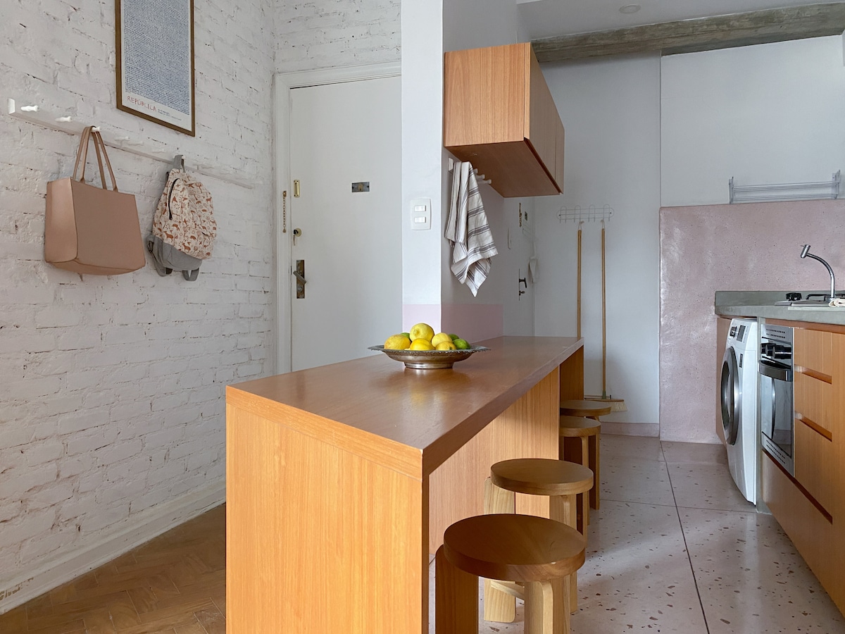 Dizajnerski stan koji je potpisala Adriana Penteado u Žardinsu, 2 bloka od Av. Paulista i 4 od ulice Oskar Freire. Idealno za one koji cene udobnost i stratešku lokaciju. Stan nudi opremljenu kuhinju, Wi-Fi od 500 MB, garažu sa uslugom parkiranja i uslugu čišćenja radnim danima koja je već uključena. Praktičan pristup pomoću koda, bez korišćenja ključeva. Savršeno za poslovna ili turistička putovanja, sa osećajem da ste kod kuće i praktičnošću hotela.