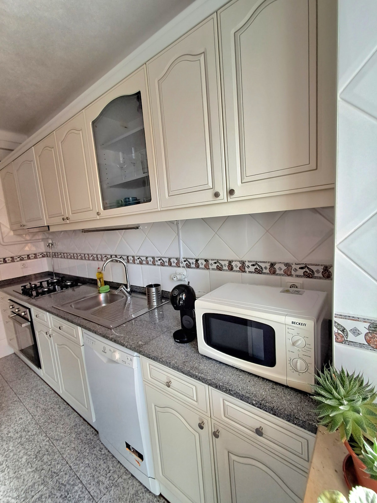 Beautiful spacious, comfortable apartment of 75m2 with air conditioning and fantastic views of the Atlantic Ocean and the mountains. Terrace both front and side. The fully equipped kitchen is equipped with a large refrigerator, dishwasher, washing machine, 4 burner induction hob, oven, coffee maker etc. A very spacious bedroom with a double bed. The modern bathroom has a walk-in shower, sink, toilet and underfloor heating for the winter. There is a closed parking lot.
