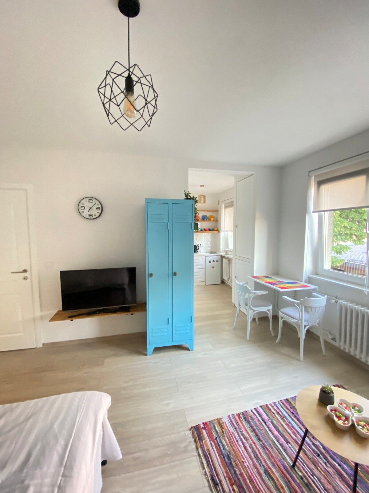 Stan se nalazi na idealnoj lokaciji u porodičnoj kući. Površina stana od 50 m2, sadrži prostor za sedenje, kupatilo sa tušem, kuhinju i jednu spavaću sobu. Stan takođe ima TV sa ravnim ekranom sa kablovskim kanalima u dnevnoj sobi i besplatan brzi Wi-Fi. Pored stana postoji i besplatno parking mesto.