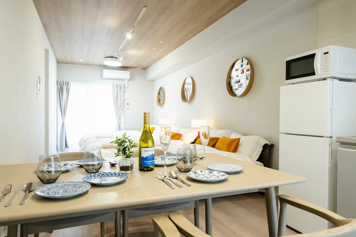 This elegant 2025-built apartment is a 4-minute walk from Nagasaki Station, near Stadium City and Dejima Messe, accommodating up to 5 guests—perfect for families or groups. The living room has a projector for movies and videos, and the balcony offers stunning views with chairs and a table. Vending machines are on the first floor. Nearby are convenience stores, supermarkets, malls, pharmacies, and car rentals. Stadium City, within walking distance, also features hot springs and saunas.
