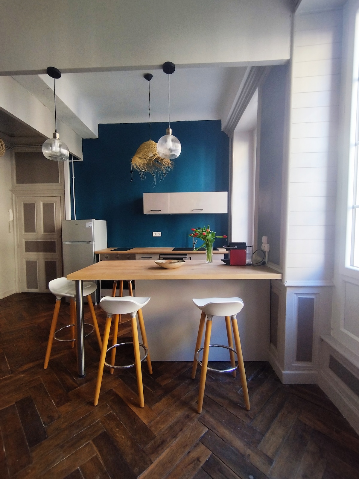 Ovaj jedinstveni smještaj, koji se nalazi u srcu istorijskog centra Čalon sur Saone, zavešće vas svojim francuskim šarmom svojim izloženim kamenjem i okvirom i svim njegovim karakteristikama. Kuhinja opremljena vinskim podrumom, dnevnim boravkom sa sofom, Wi-Fi mrežom i Netflix-om. Kupatilo sa tuš kabinom i kadom Mezaninska soba sa bračnim krevetom, opremljena garderobom i fiokom za odlaganje. Ovo potkrovlje će zavesti svojim jedinstvenim dizajnom i učiniti vaš boravak nezaboravnim.
