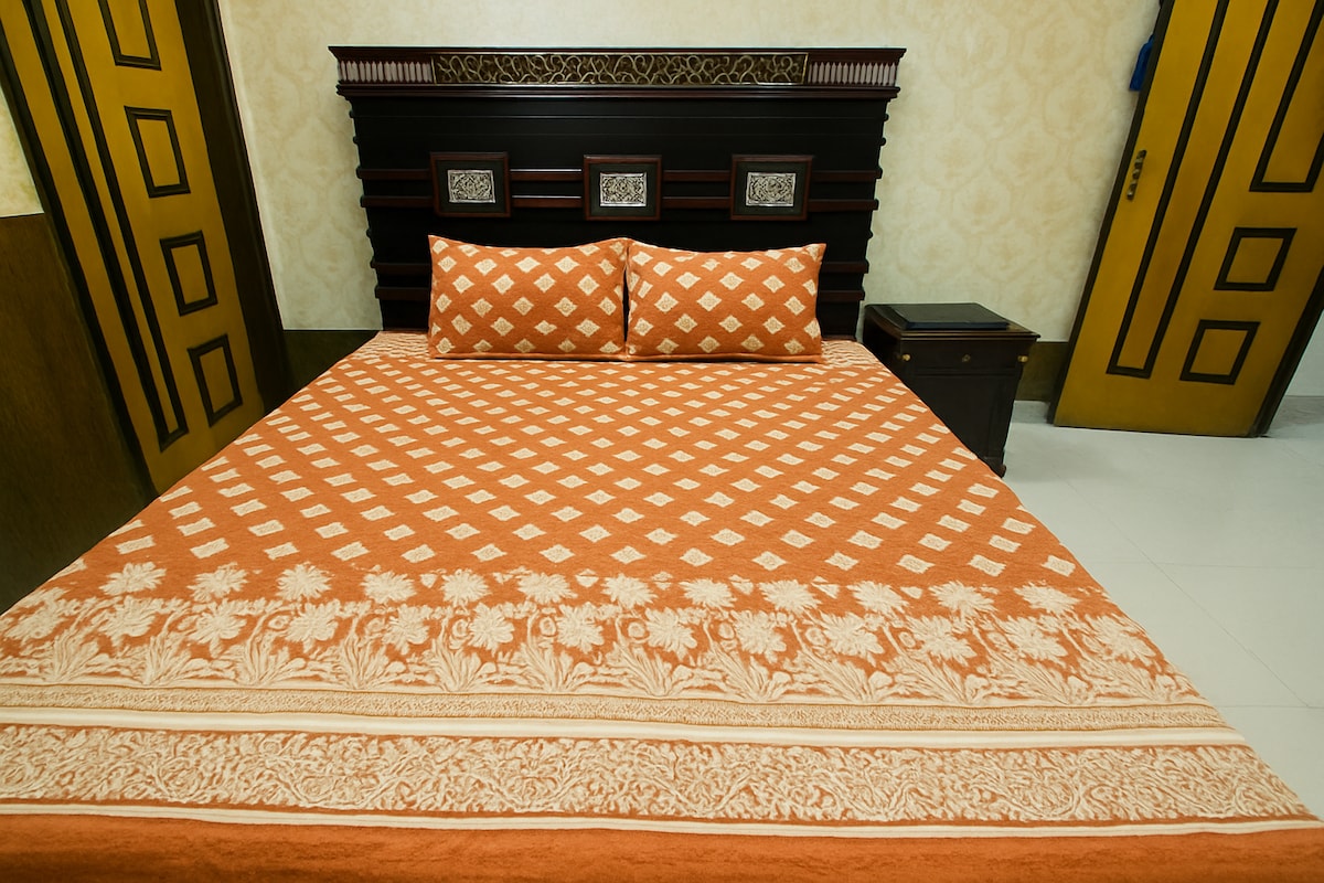Welcome to Global Glory Holiday Homes ®️. Stay at Relaxing and Family Friendly 2BR Flat in Kashmir Heights, most desirable address in Citi Housing, Jhelum. This luxury 2-bedroom apartment features 2 king beds, modern baths, a family kitchen, cozy lounge, AC in all rooms, UPS backup, WiFi, smart TV, and free parking. Enjoy garden views and walkable access to Citi Theme Park, Opera Cinema, restaurants, banks, and supermarkets. Perfect for families, couples, and business stays. Home Away from Home