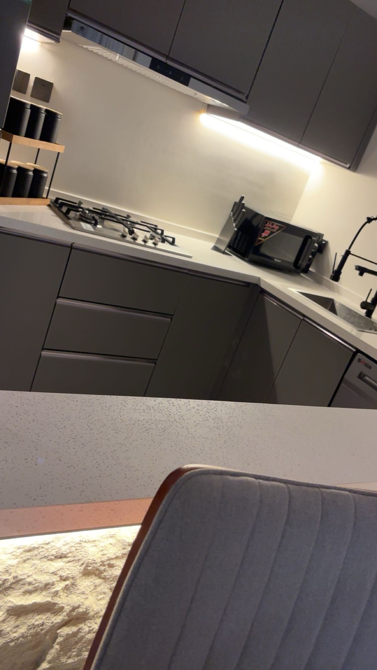 تتميز وحداتنا بالهدوء والراحة والخصوصية الكاملة وقد راعينا في تأثيثها اختيار اجود واجمل التصاميم والتنسيقات. كما انها تمتاز ايضاً بمطبخ كامل مجهز بكامل الاجهزة الكهربائية واواني الطبخ وتحضير الطعام. بالاضافة الى غسالة ملابس و منشر غسيل وطاولة مكوى. وتتكون وحداتنا من غرفة نوم رئيسية (ماستر) واسعة مجهزة بسرير نوم مريح. وجلسة وثلاجة وركن للقهوة والشاي وشاشة تلفزيون 65 بوصة و اضاءات خاصة بخيارات متعددة. كما تمتاز غرف النوم في الوحدة بمفارش فندقية مريحة وبأفضل المواصفات.