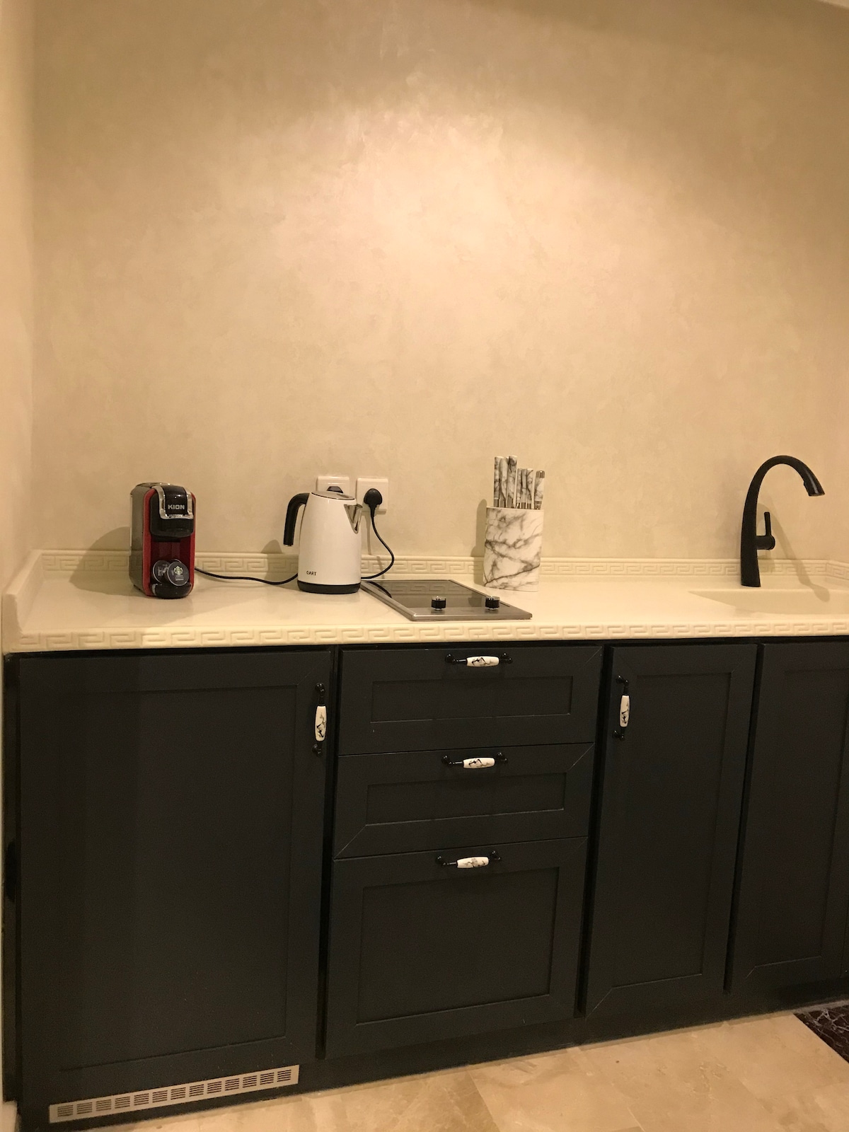Luxury self check-in apartment with a living room open to the kitchen and dining area, master bedroom, twin room, and a triple single-bed room, plus maid room, dryer, and 3 bathrooms (shampoo, slippers, towels). • Located in Safa Compound, Al Malqa Living room has a TV with Netflix, Shahid, YouTube, and more Compound amenities: • Private parking • Pool & sauna • Gym • Game room • Kids nursery • Lounge • café • Smart Market Prime location: • 17 mins to airport • 5 mins to Boulevard