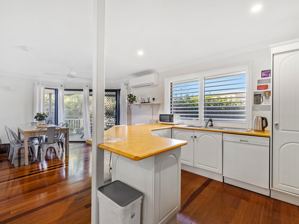 The Beach House is situated in an ideal position just a few steps to beautiful Sawtell beach! You will instantly feel relaxed as you enter the open plan living, dining & kitchen area which opens up to a private deck area Perfect for a couple but can suit a small/young family. MAXIMUM 2 adults & 2 young children. The 2 bedrooms each have a queen bed. Located just steps away from Sawtell beach and a short 3 minute walk to Sawtell village!