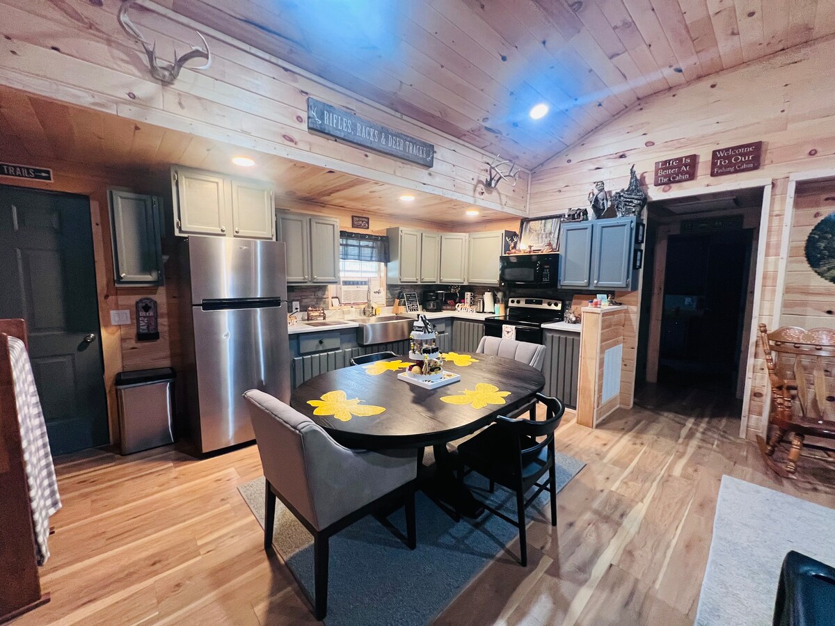 Uživajte u mirnom odmoru. Ova novoizgrađena brvnara sa svim modernim karakteristikama nalazi se u istorijskom Stearnsu (KY). Okruženi drvećem i sa pogledom na prelepi pašnjak, posetioci mogu da se opuste i uživaju u planinarskim i pešačkim stazama Nacionalne šume Danijela Buna i jahanja, kajakom i slikovitim atrakcijama Kamberland Folsa. Takođe uživajte i pogledajte živopisni željeznički voz Big Saut Fork. Bezbjednosne kamere su isključene kada gost boravi u brvnari.