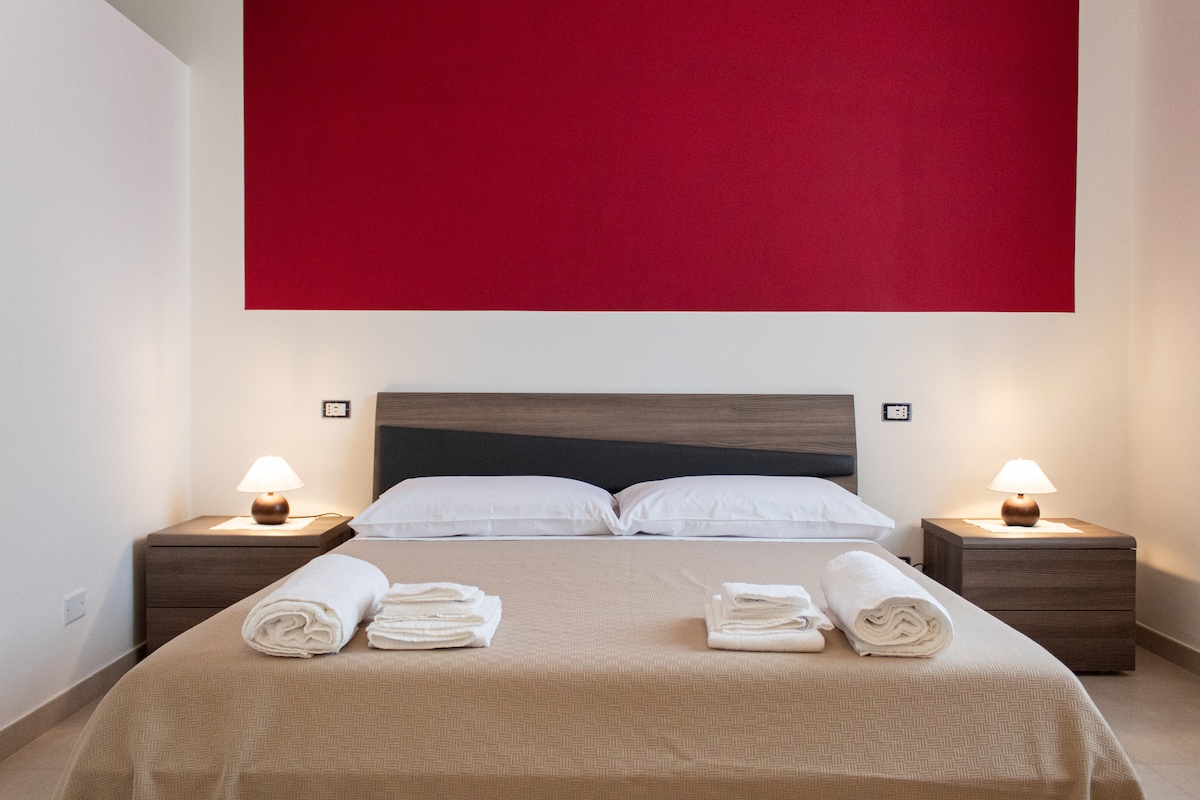 Vrlo veliki i prostrani stan, velika terasa sa pogledom na Vezuv, besplatan parking, 3 spavaće sobe sa 9 kreveta, dobro opremljena kuhinja, besplatna mašina za pranje veša, stolica za hranjenje, besplatan krevetac i sto za presvlačenje, 2 kupatila, pogodna i opremljena za bilo koju vrstu porodice . Udaljen je 20/30 minuta hoda od centra, ruševina Pompeja i bazilike. Dobro povezan sa Sorentom, Amalfijskom obalom, Napulja i još mnogo toga automobilom, taksijem ili vozom.