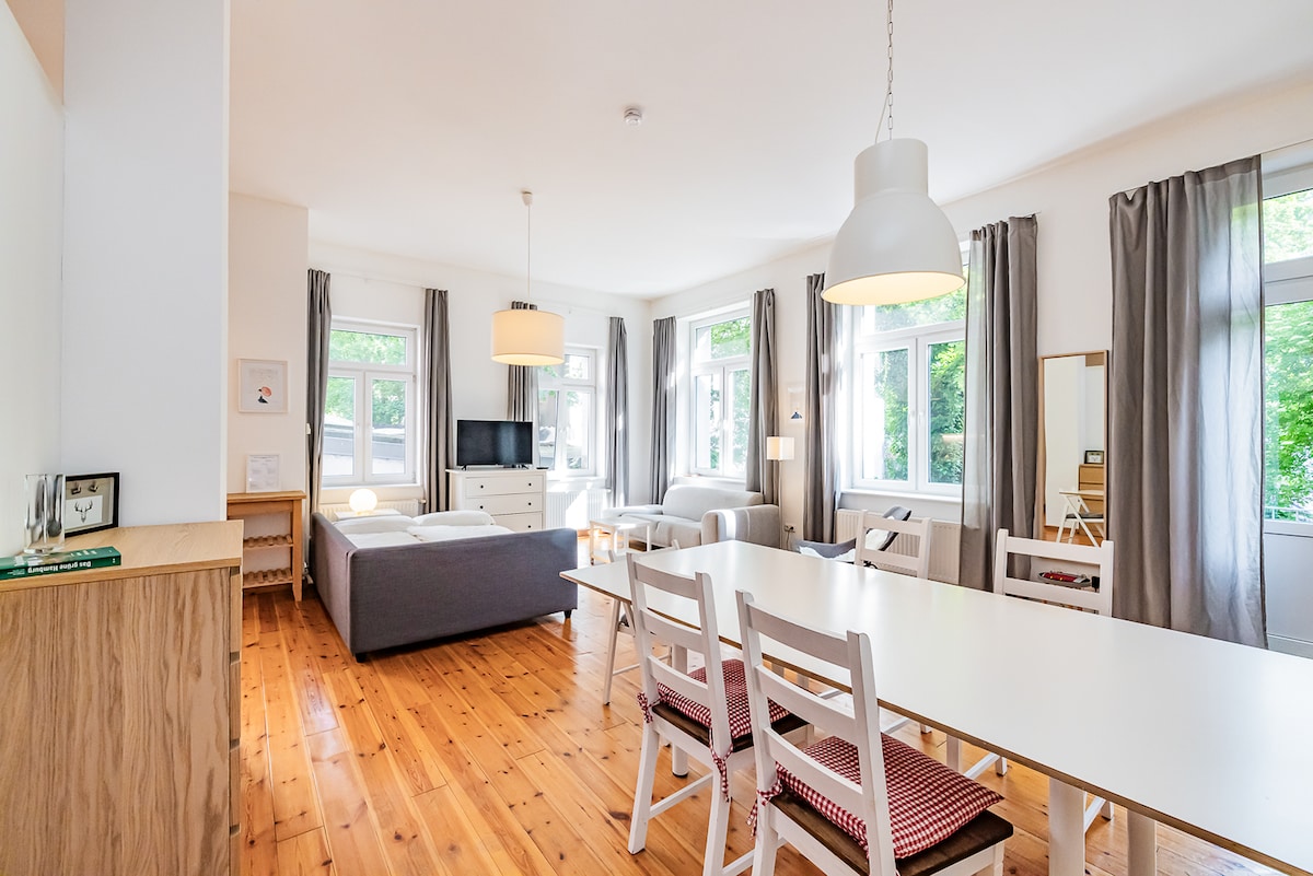 Neueröffnung 9/2020. Wunderschönes Apartment in ruhiger Innenhoflage am Rande des Schanzenviertels. Übernachten Sie in der 1885 gebauten und 2020 sanierten Kaufmannsvilla in einer verkehrsberuhigten Wohnstraße. Altbaucharme mit moderner hotelähnlicher Austattung, verbessertem Schallschutz und gut ausgestatteter Küche. Fußläufig erreichbar befinden sich zahlreiche Bars und Restaurants des beliebten Szeneviertels Sternschanze. Kinderfreundlicher Stadtteil mit vielen Spielplätzen.