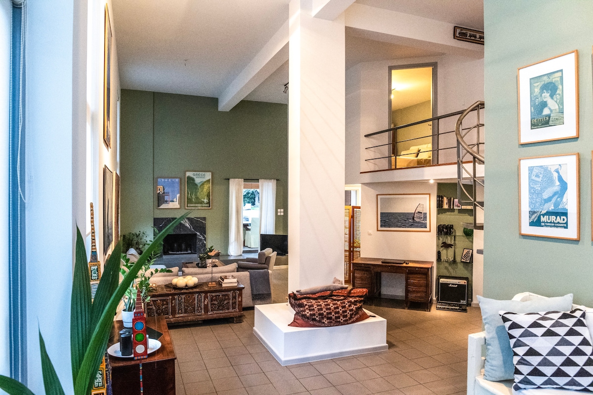 Zaista jedinstven penthaus u kraljevskom stilu samo 8 minuta od aerodroma u Atini. Poput privatnog muzeja, sadrži antikvitete, ogromne krevete od 200×220, veliku privatnu terasu i pristup krovu za panoramski pogled i posmatranje aviona. Idealno za porodice, sa mnogo prostora i karaktera koje nećete naći nigdje drugdje u okolini. Staklena vrata preplavljuju prostor prirodnim svjetlom i uokviruju otvoreno nebo — jedinstven smještaj koji spaja klasični šarm s rijetkim pogledom na grad.