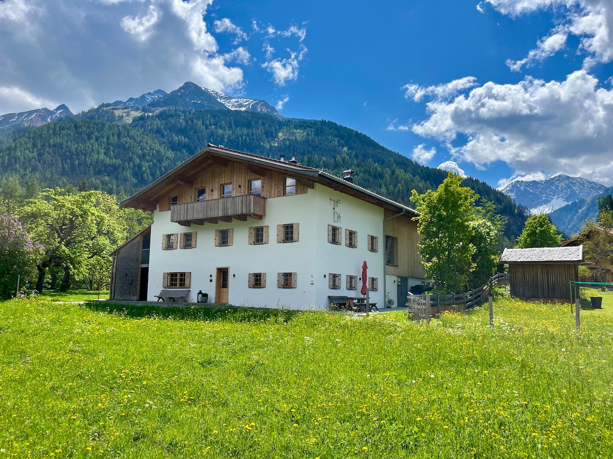 Enjoy your holiday in the beautiful Pitztal in this modern, fully equipped holiday apartment. The accommodation offers the highest level of comfort and is perfect for families, friends or couples looking for relaxation and nature. Highlights: 2 comfortable bedrooms – each with its own private bathroom & washing machine Cosy living & dining area with fully equipped kitchen Panoramic terrace with comfortable sun loungers Private parking directly at the property