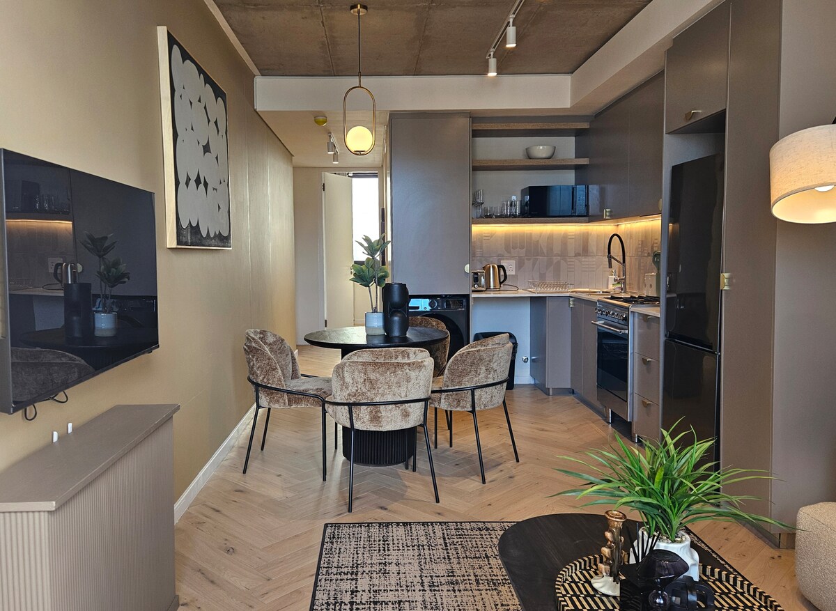 Pozivamo vas da nam se pridružite u našem potpuno novom, modernom i ukusno uređenom stanu sa, iskreno rečeno, vrhunskom pozicijom i pogledom o kojem biste mogli da sanjarite tokom posete Kejptaunu. Mislite da su slike lepe danju? Pogledajte zalaske sunca i očaravajući grad i svetla uz obalu noću. Samo 3 sprata niže, terasa za bazen na 27. spratu i prostor za fitnes na otvorenom pružaju vam savršen pogled od 360 stepeni. Izađite na ulicu Bree...VAU! Nema nestanka struje u ovoj zgradi.
