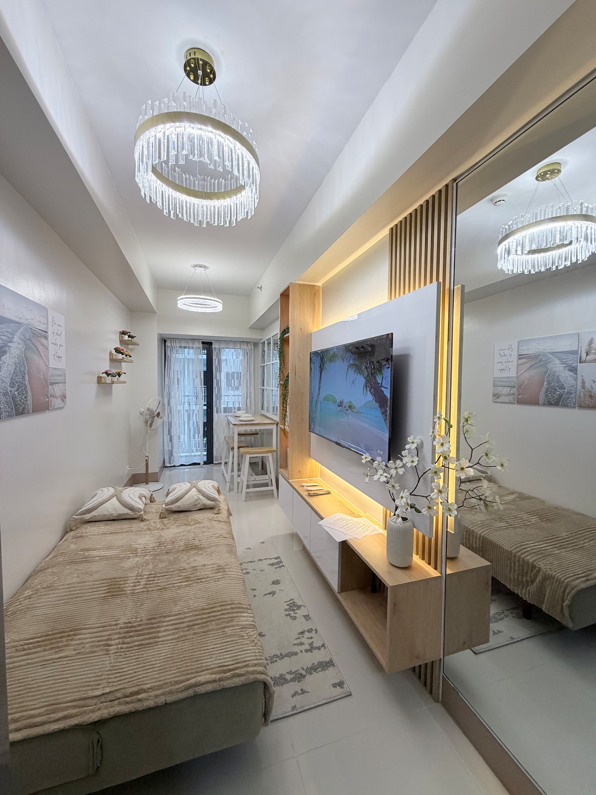 Dobro došli u 676 Living – Berlin u objektu Shell Residences, elegantan jednosoban stan inspirisan modernim industrijskim dizajnom i elegantnim gradskim životom. Pažljivo uređen, sa jasnim linijama, toplim tonovima i udobnošću nalik hotelskoj, idealan je za kraće ili duže boravke. Uživajte u brzom Wi-Fi-ju, kablovskoj televiziji, usluzi Alexa, klima-uređaju i osnovnim sadržajima. Smešten je u kompleksu Mall of Asia, pa ste na nekoliko minuta od prodavnica, restorana, zabavnih sadržaja i aerodroma NAIA.