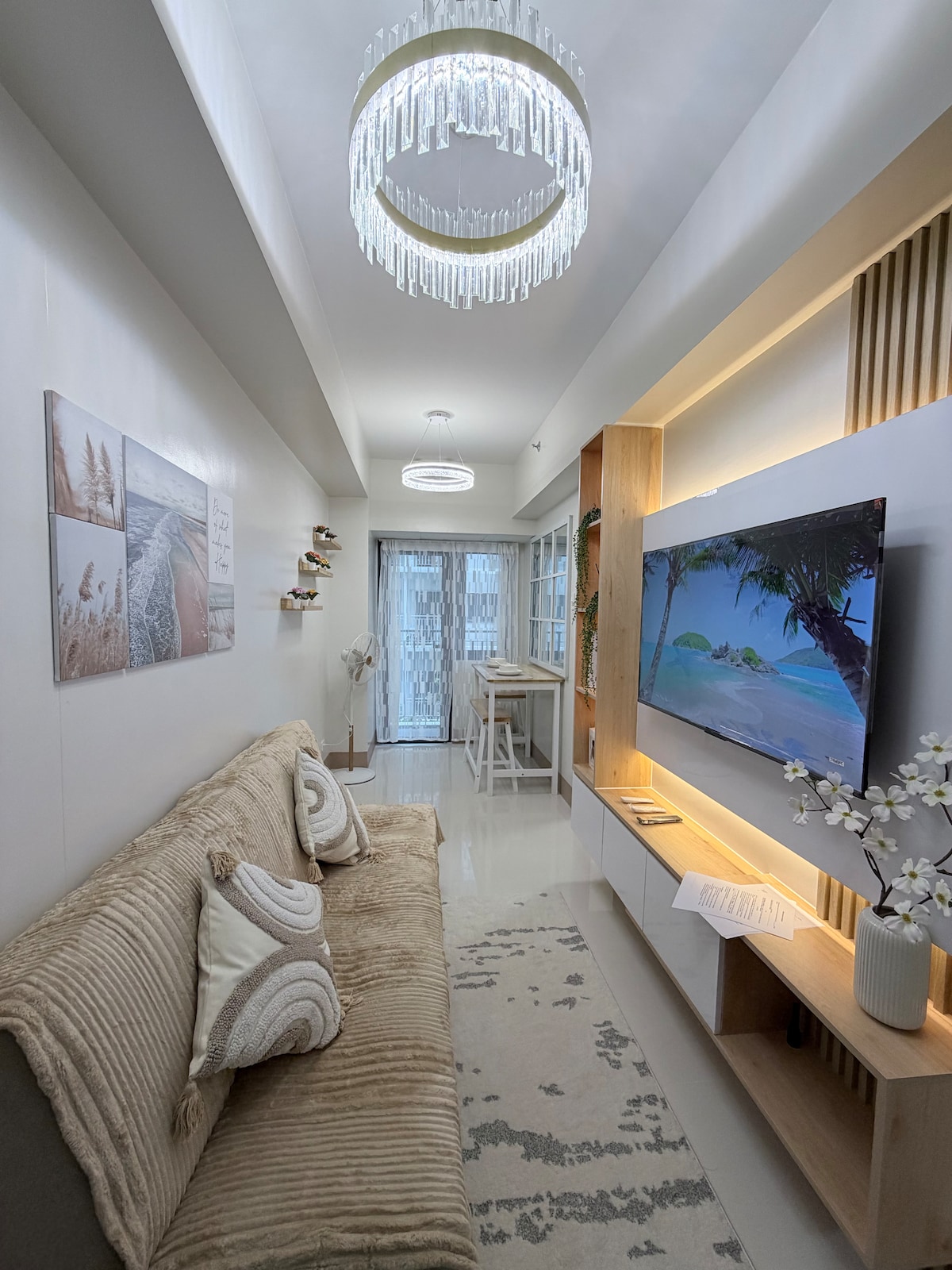 Dobro došli u našu minimalističku jednosobnu jedinicu s nevjerovatnim pogledom na bazen. Opustite se u prozračnom dnevnom boravku uz naš pametni TV, spremite obroke u našoj potpuno opremljenoj kuhinji kako biste večerali ili jednostavno uživajte u trenucima s pogledom na balkon. Ali i najvažnije, mirno spavajte u našim udobnim krevetima. Nalazi se na pješačkoj udaljenosti od Ikee, kongresnog centra SMX, Moa Arene i onih koji okružuju područje tržnog centra Mall of Asia. Uživajte u obližnjim restoranima, kafićima i praktičnim prodavnicama u neposrednoj blizini stana.