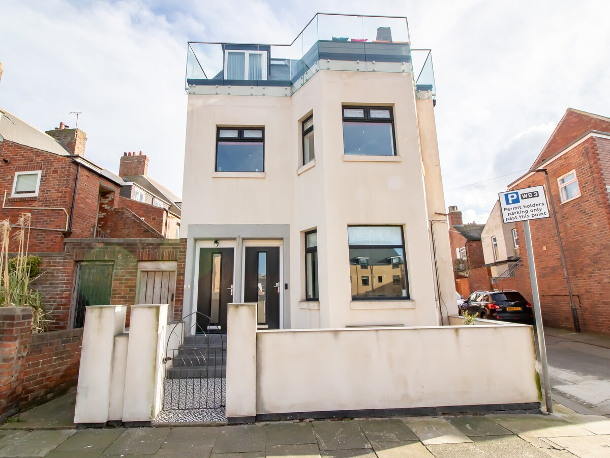 Savršen odmor na obali! Samo 3 minuta hoda do plaže Longsands, ovaj elegantni smještaj uz more nalazi se između sela Cullercoats i istorijskog Tinemuta. Uživajte u privatnoj hidromasažnoj kadi, prostranom vrtu u stilu odmarališta i novouređenom enterijeru. Idealno za porodice, parove i ljubitelje pasa - kućni ljubimci su dobrodošli! Ima super veliki bračni krevet u glavnoj spavaćoj sobi i vaš izbor bračnog kreveta ili dva kreveta za jednu osobu u drugoj spavaćoj sobi. Potpuni pristup objektu, a mi smo u blizini ako vam nešto zatreba!