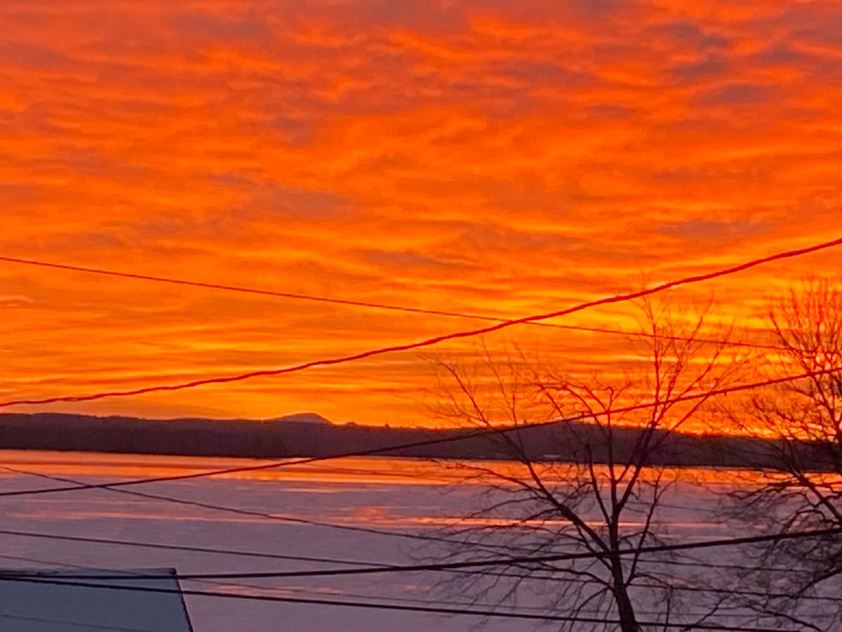 Canoodlin is the last point of land before the “big lake” and offers something for everyone with loon calls, fire pit, hammocks, hikes, fishing, canoeing, SUP, swimming and just taking in the beautiful sunset and views of Borestone from the well appointed, private cabin. 2 private master bedrooms, each with its own full bath, have king or twin beds. Gas fireplace, range, oven and BBQ, plus dishwasher and full size refrigerator. Washer/dryer, linens/towels, and basic essentials are provided.