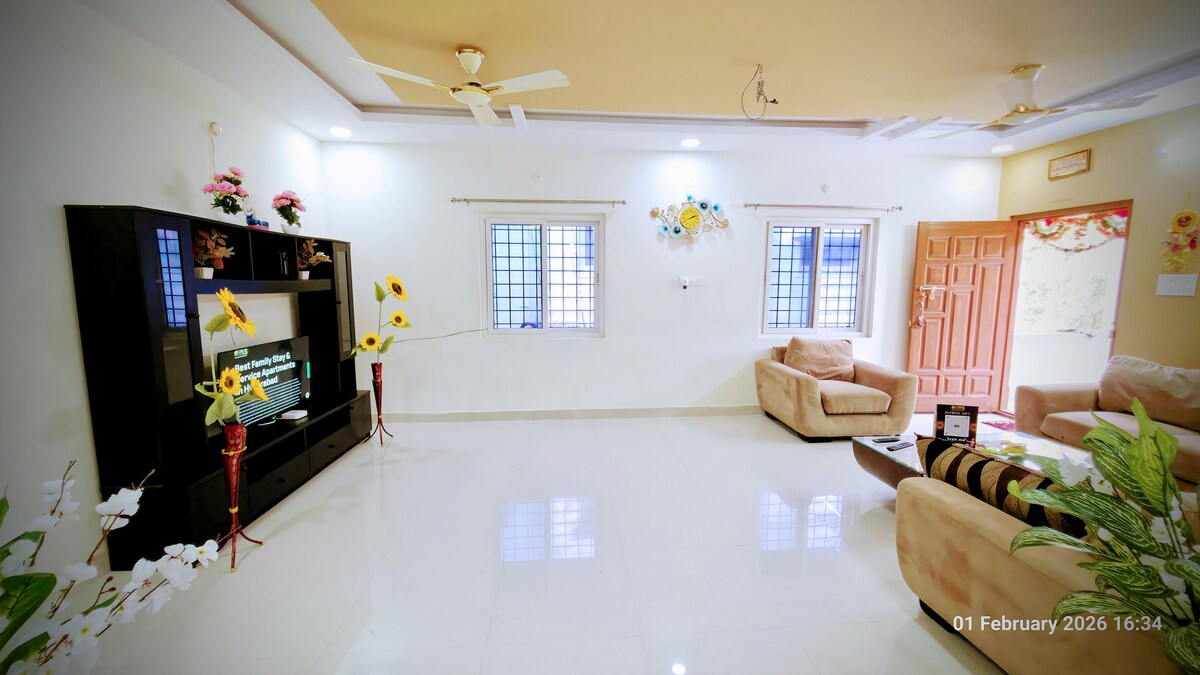 Luksuzan, udoban i samo 5 minuta od Hi-Tech Cityja, ovaj stan na 1. spratu je savršen za: - Porodica ili prijatelji od 2 do 13 osoba, gosti vjenčanja, NRI-ovi itd., kojima je potreban smještaj u centru grada i dnevna usluga sobarice. - Zaposleni koji rade na daljinu i kojima je potreban brzi Wi-Fi, potpuno opremljena kuhinja i rezervno napajanje invertera. - Parovi koji žele kratkoročni boravak i opuštanje ispred 55" 4K-smartTV-a - Prijatelji kojima je potreban privatni smještaj za druženje u gradu - Posjetioci Jašode, AIG